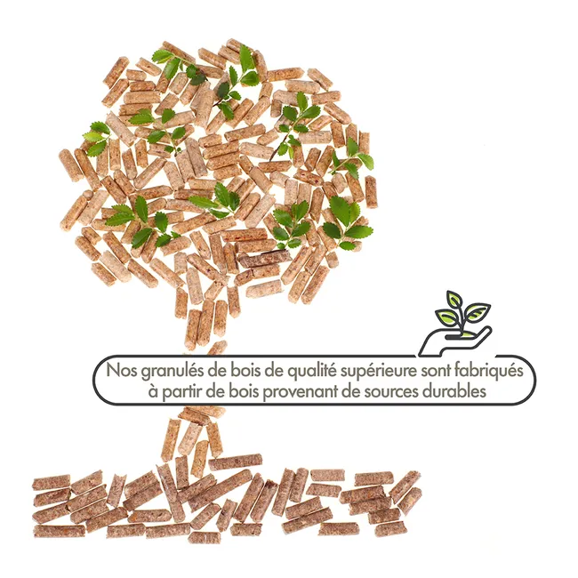 Les granulés proviennent de sources durables soigneusement sélectionnées pour leur haute performance thermique et faible teneur en cendres.
